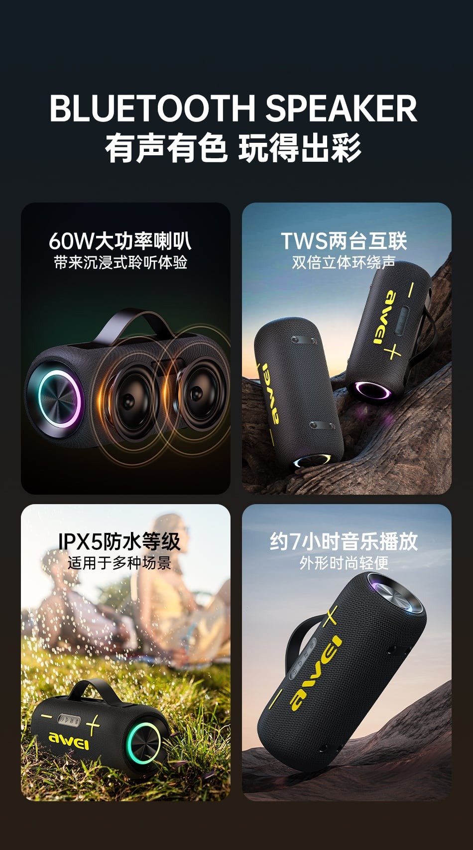 Awei KA10 60W Wireless RGB Outdoor Speaker