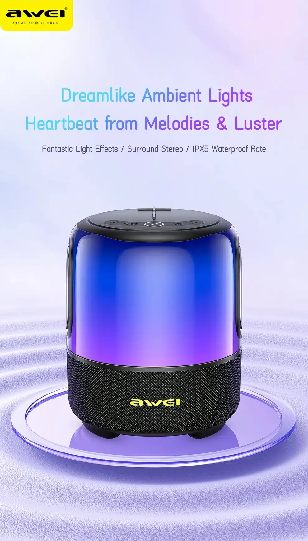 2. IPX5 waterproof rate, colorful breathing lights