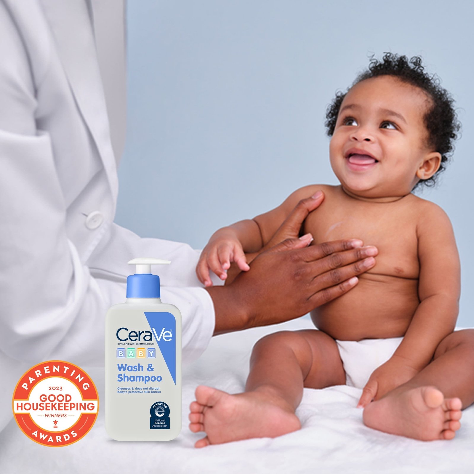 CeraVe Baby Wash & Shampoo is a gentle, tear-free 2-in-1 cleanser that hydrates and soothes your baby’s delicate skin and hair. Fragrance-free and enriched with essential ceramides, it’s perfect for sensitive skin.