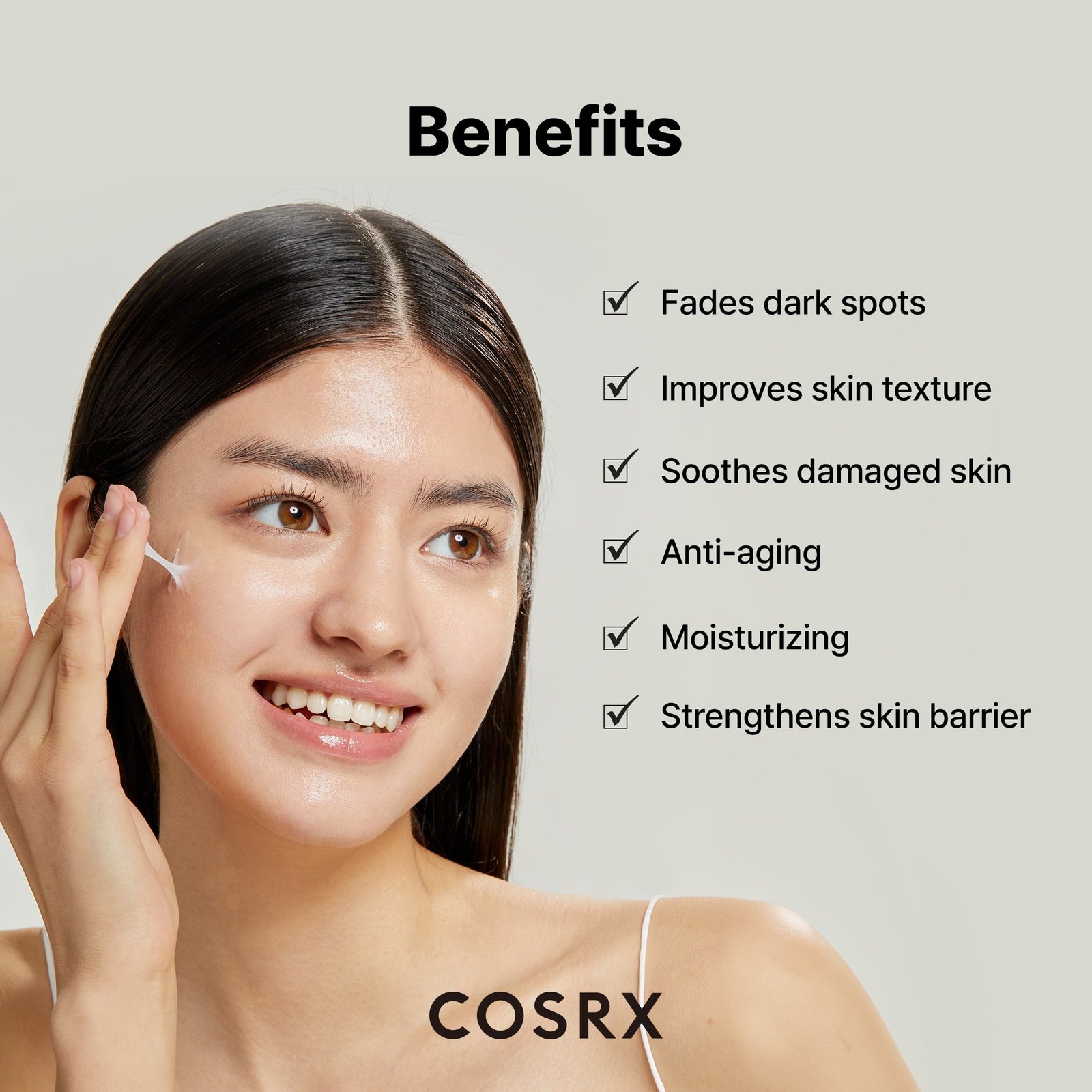 Cosrx Advanced Snail 92 All In One Cream provides intense hydration and skin repair with 92% Snail Mucin, helping to soothe and rejuvenate dry, sensitive skin while improving texture and elasticity.