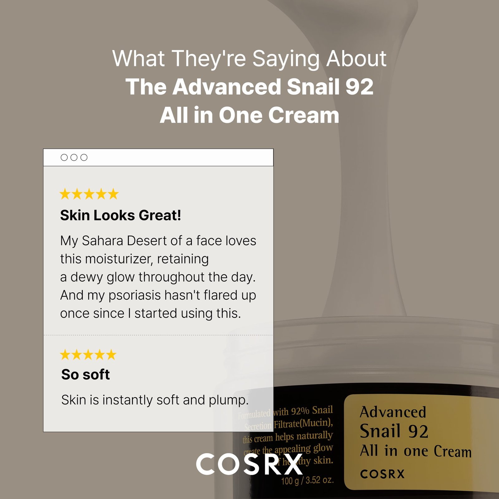 Intense Hydration: Provides deep, long-lasting moisture with 92% Snail Mucin.
