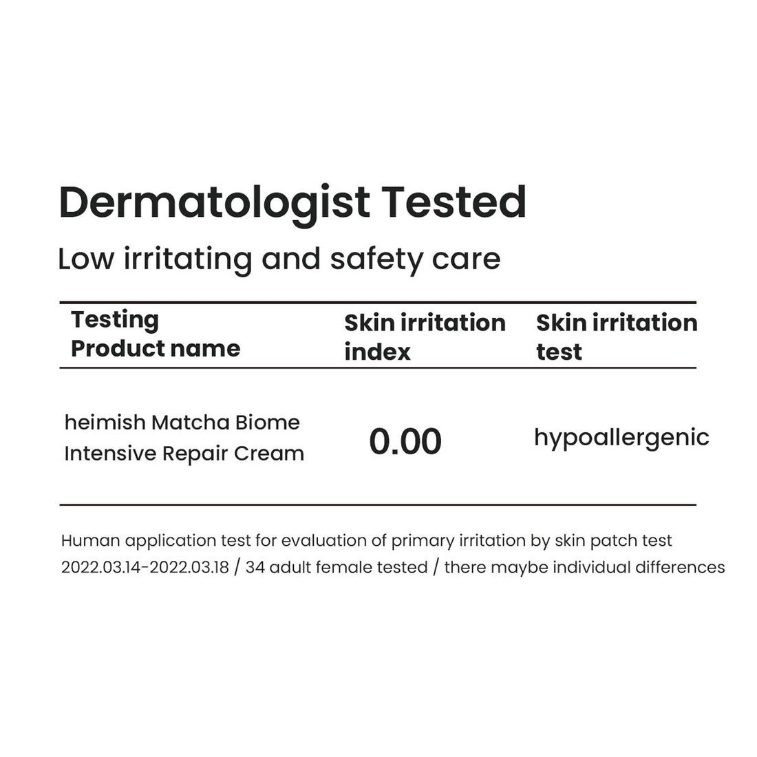 Heimish Matcha Biome Repair Cream nourishes, hydrates, and repairs sensitive and damaged skin with matcha extract and probiotics, leaving it soothed, radiant, and healthy