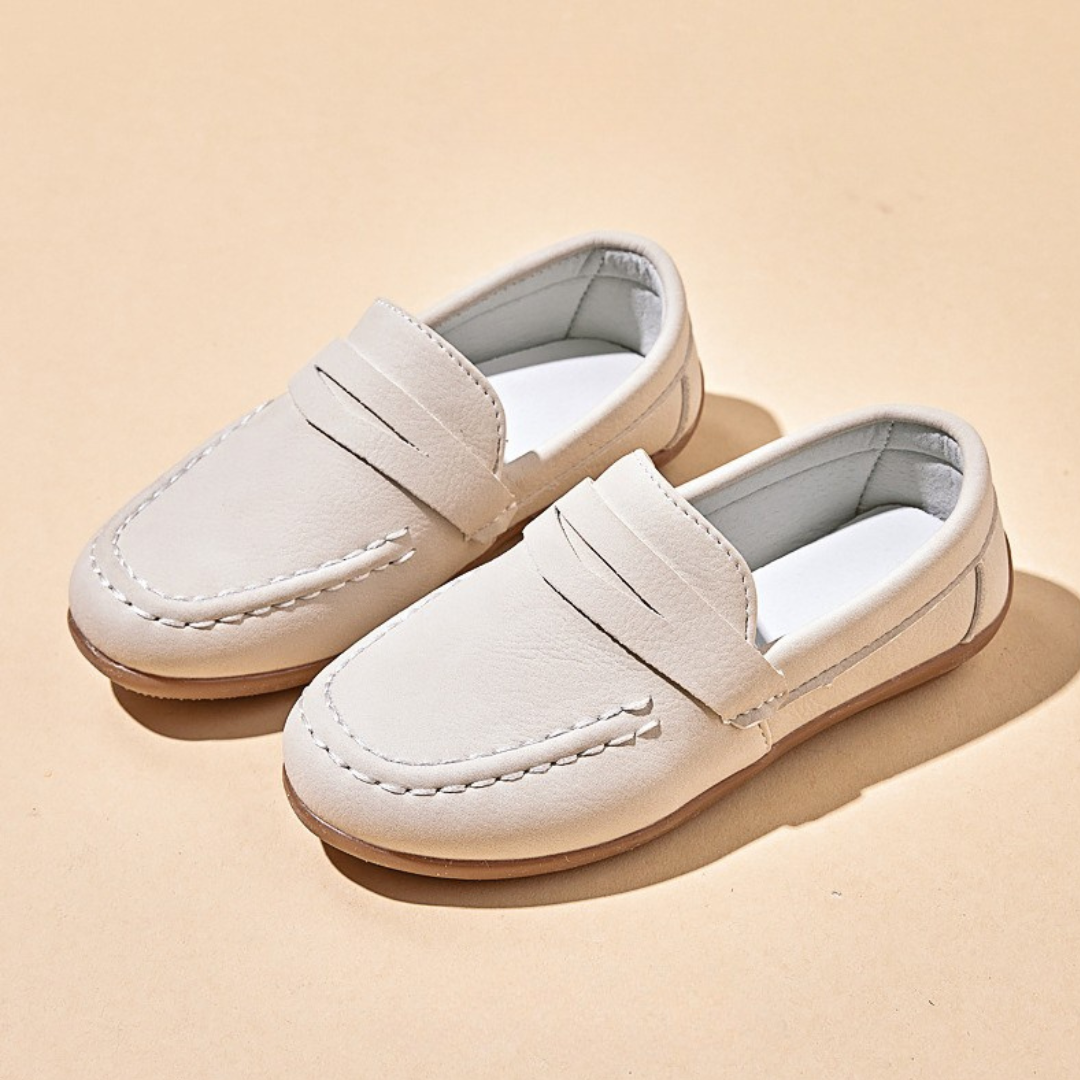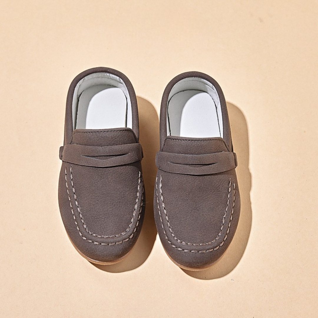 These stylish kids’ casual loafers offer a more refined “urban explorer” look, blending the comfort of a slip-on shoe with a sophisticated design. Perfect for family outings or special occasions, they feature a classic moc-toe silhouette that provides a smart yet relaxed aesthetic for active youngsters.