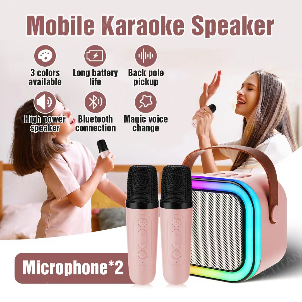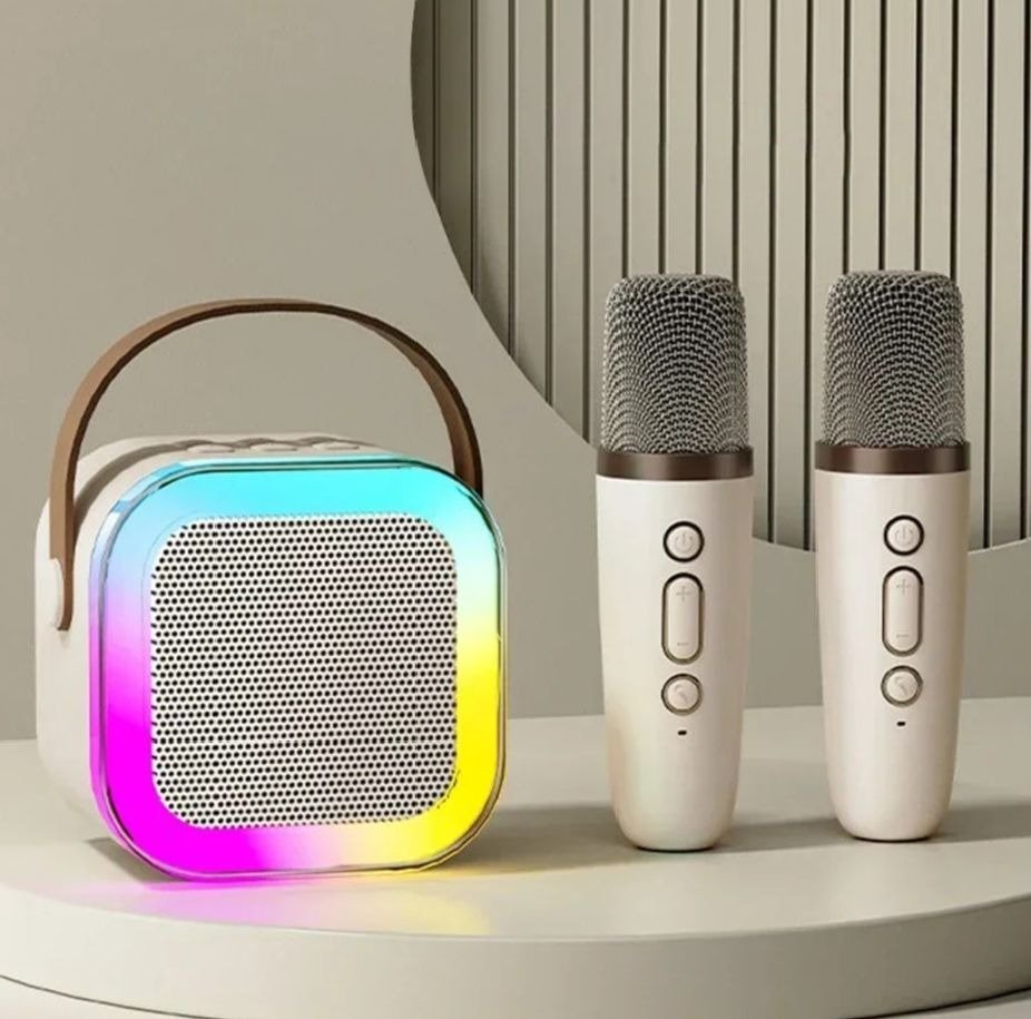 The K12 karaoke mic system includes two high-quality microphones and a built-in Bluetooth wireless speaker, allowing you to sing solo or duet with friends and family. Its RGB colorful lights sync to the beat of your music, adding a vibrant and energetic atmosphere to your performances. Whether it’s a family gathering, birthday celebration, or casual night of fun, this karaoke set is the perfect centerpiece.