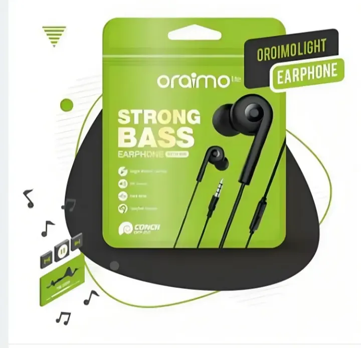 Oraimo Lite CONCH E-10 Earphones – Premium Sound, Strong Bass, & Built-in Mic for Clear Calls & Music