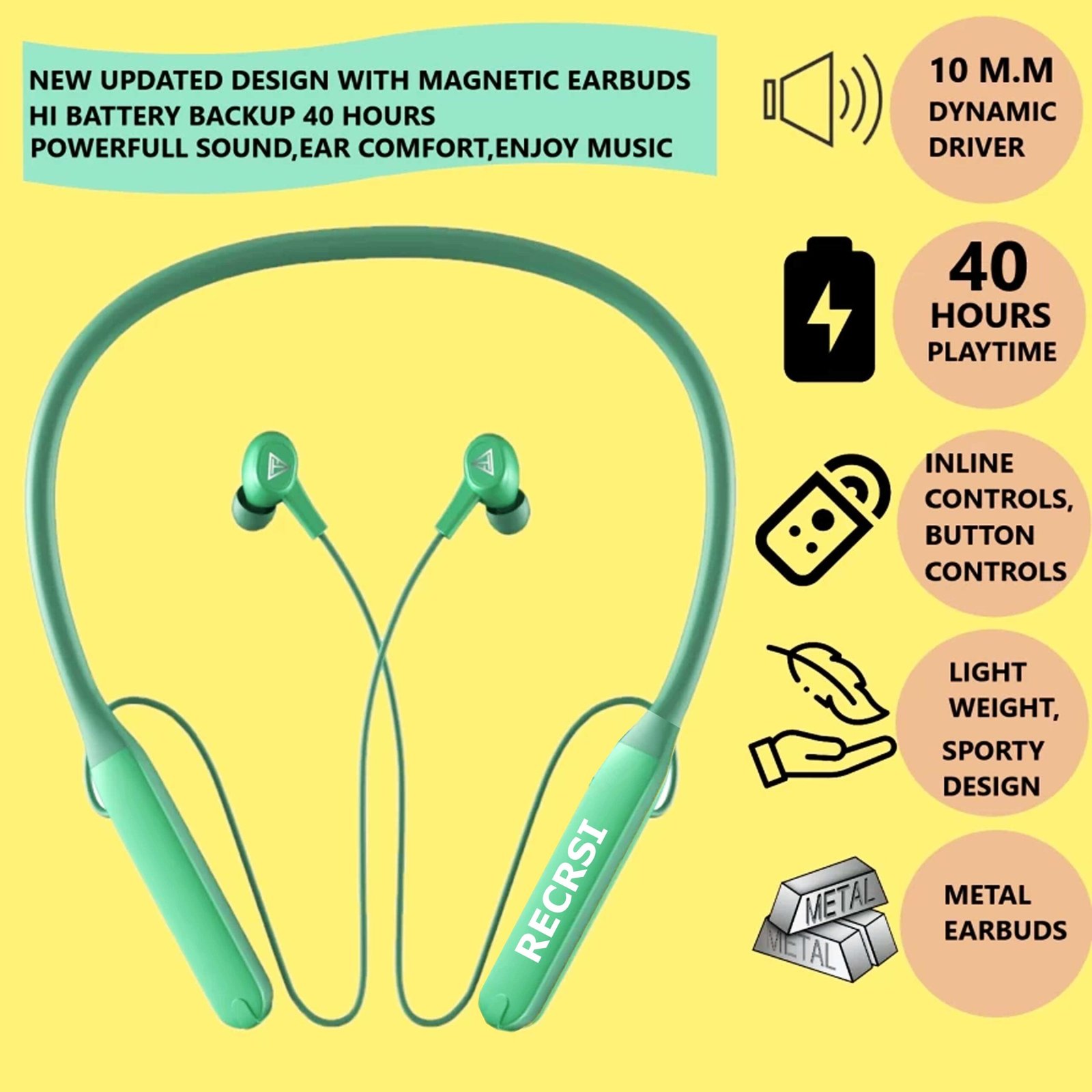 Recrsi wireless Neckband Bluetooth Earphone RECRSI RE-NY031