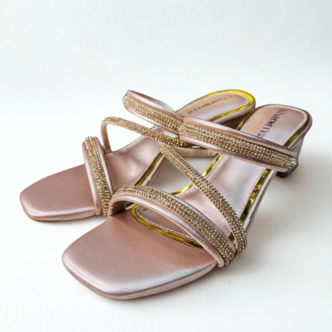 Women’s Rose Gold Shimmer Strappy Heels — Rose Gold